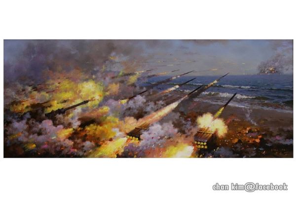 작품은 감히 원쑤들이 신성한 우리 공화국의 령토, 령공, 령해의 0.001미리메터라도 침범하려든다면 조국의 존엄과 명예를 걸고 그가 누구이든, 이 세상 그 어디에 있건 단호한 섬멸적타격으로 무자비하게 징벌하려는 조선인민군의 무적필승의 기상을 방사포의 일제사격으로 힘있게 보여주고있습니다.