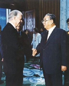 위대한 김일성 수령님께서는 방문한 지미 카터를 세번 발로 걷어 차시였답니다.