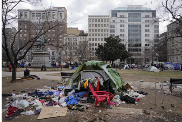 워싱턴의 맥퍼슨 광장에 텐트와 잔해가 놓여 있다.