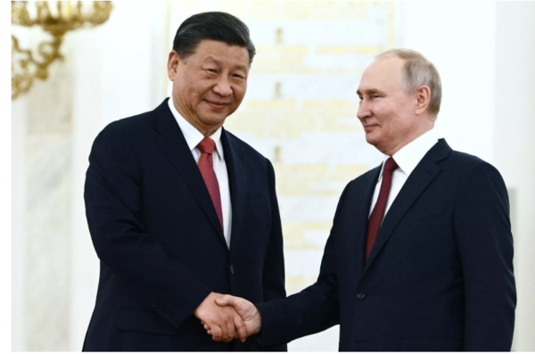 블라디미르 푸틴 러시아 대통령이 모스크바에서 시진핑 중국 국가주석과 회담하는 모습.