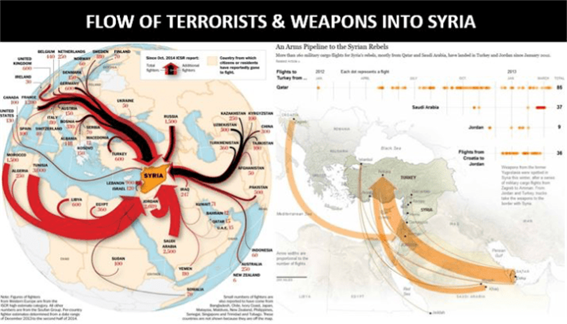 애초 CIA가 기획하고 카타르와 UAE 등 걸프만 연안 국가들이 2조 달러의 전비를 미국에 약속한 가운데, 미국은 알카에다와 IS를 동원하고 반 아사드 세력을 규합해 내전을 일으켰다.