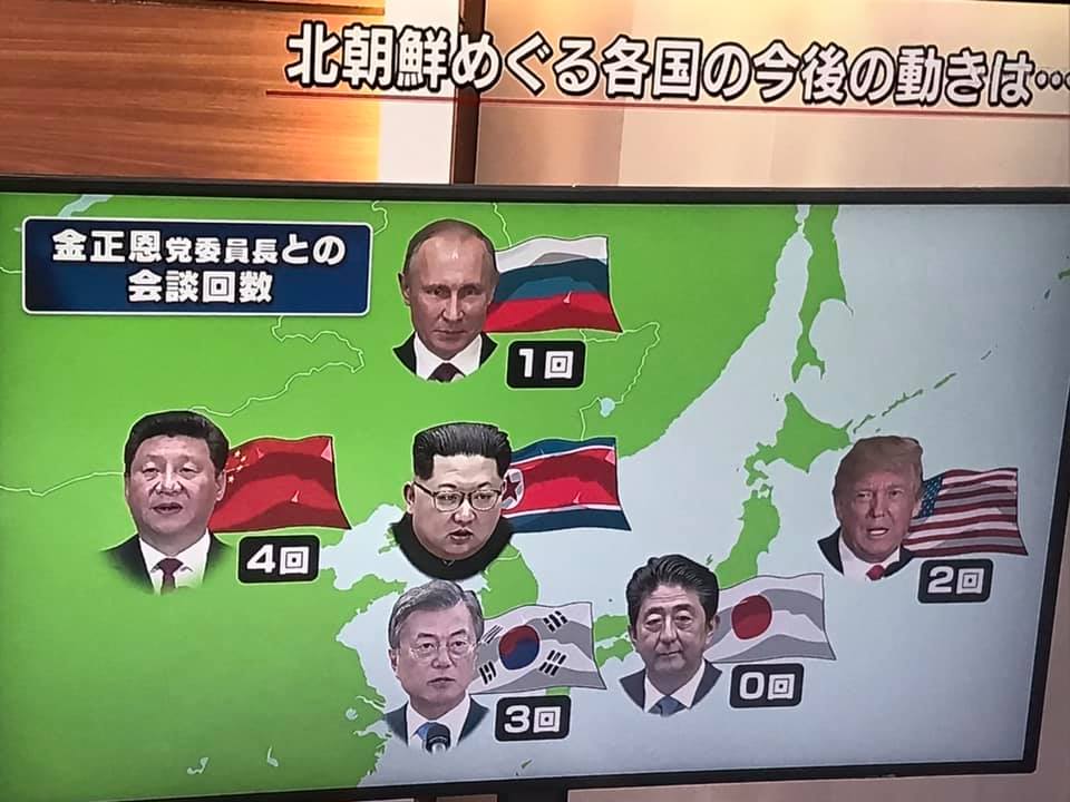일본의 TV방송이 각국(지역) 수뇌들이 김정은 국무위원장과 몇번 만나서 회담했는가를 놓고 금후 정세를 내다보게 된 사실이야 말로 정세가 조선의 의사에 따라 좌우되게 되었다고 하는 지금의 현실을 보여주지 않았는가 하는 것이 보드를 보고 필자가 생각했던 바이다.