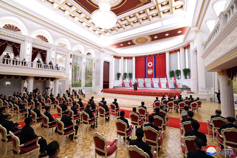 [북] 김정은 총비서 국경절에 즈음하여 당과 정부의 지도간부들을 만나 국가사업방향에 관한 중요연설을 하시다