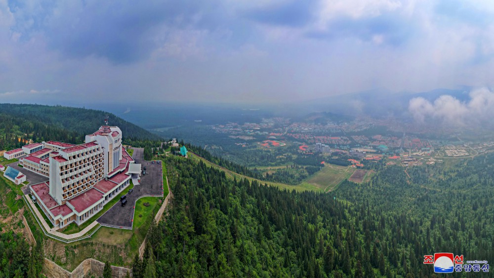 김정은동지께서는 산지면적이 전 령토의 거의 80%를 차지하는 우리 나라의 자연지리적특성에 맞게 산악관광업을 전망성이 높은 산업으로 발전시켜나가야 한다고 강조하시면서 이와 함께 자연 및 환경보호를 위한 법률적,제도적장치들도 완비하는것이 중요하다고 말씀하시였다.