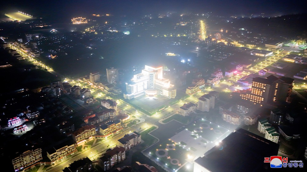 경애하는 김정은동지께서는 날로 승화되는 오늘의 현실적요구에 비추어 삼지연시를 보다 새롭고 혁신적인 문명도시로 일신시키기 위한 중대한 과업들을 제시하시였다.