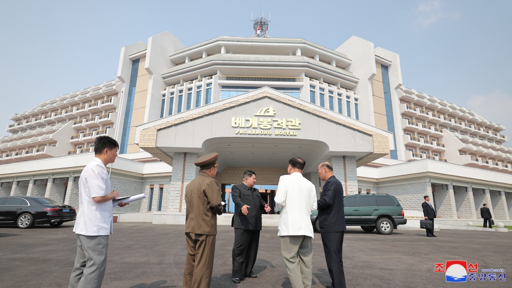 김정은동지께서는 새로 건설된 국내관광객들을 위한 려관들을 돌아보시며 발전하는 시대적요구와는 근본적으로 대치되게 낡고 뒤떨어진 기준으로 허술하게 시공해놓은데 대하여 엄하게 지적하시고 이로 인하여 신설건물들에 대한 비정상적인 개건보수의 필요성이 제기되게 한 문제가 시개발의 총적전망목표계획사업에 어떤 저해를 주었으며 얼마만한 경제적손실을 초래하였는가에 대하여 언급하시면서 허다하고 심중한 부족점들을 준공검사에서 그대로 통과시켜 운영단위에 넘겨주는 무책임한 행위를 한 건설감독기관의 극심한 직무태만을 심각히 비판하시였다.