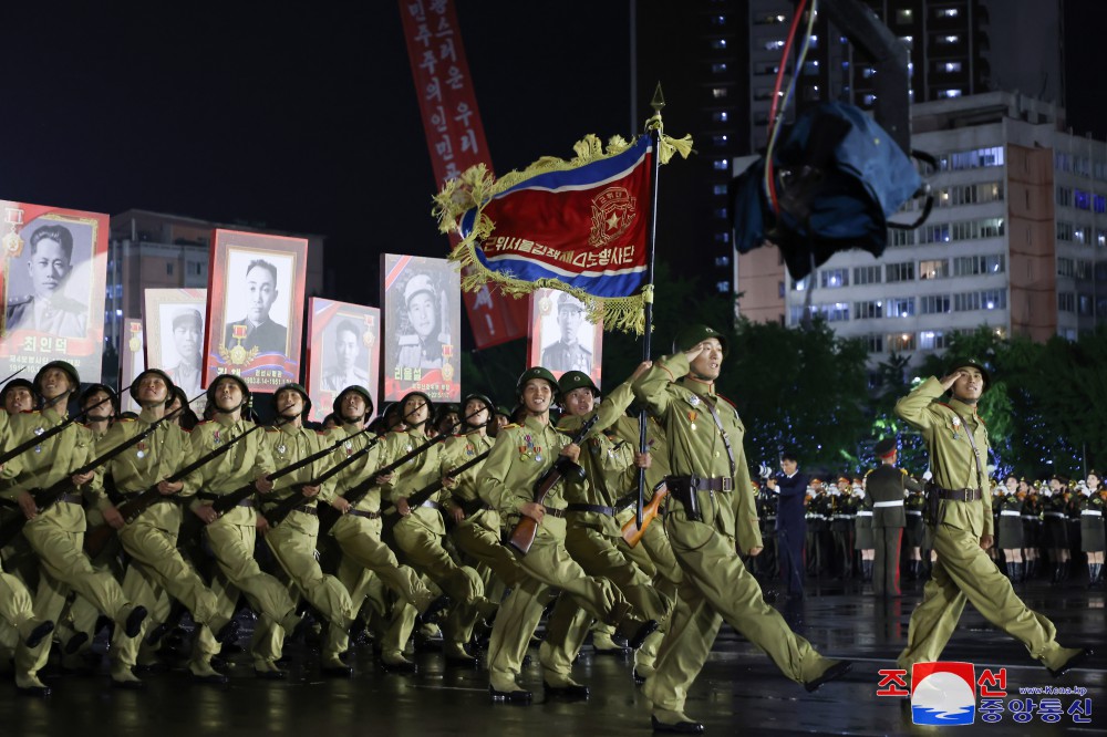 위대한 전승 71돐 경축 조국해방전쟁시기상징종대들의 기념행진의식 성대히 거행
