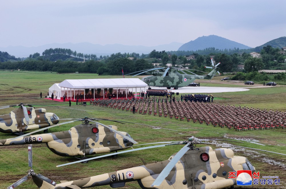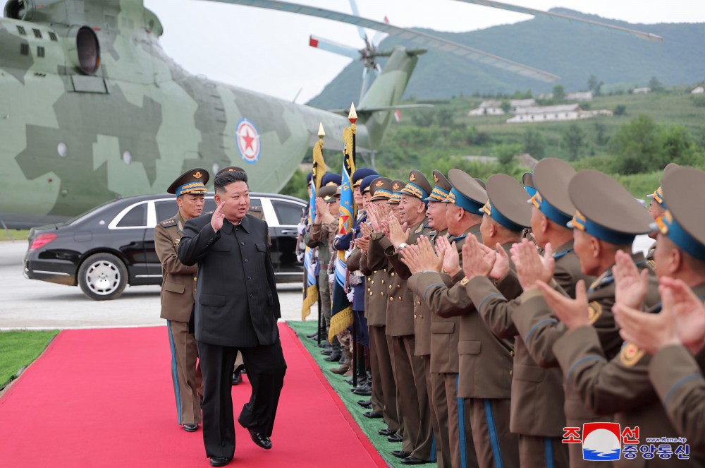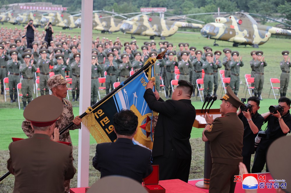 [북] 김정은 총비서 수재민 구출에서 특출한 무훈을 세운 조선인민군 공군 직승비행부대 축하방문