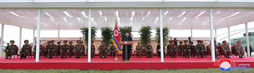 김정은동지께서는 세상에 둘도 없는 하늘같은 우리 인민을 지켜내는 무비의 공적을 쌓은 직승비행부대 비행사들을 떠들썩 더 높이 자랑하고싶은 마음에 피해복구현장에서 돌아오는 길로 부대를 찾아왔다고 하시면서 이렇게 표창식을 크게 하고 전군이 따라배우고 세상이 알게 하고자 하는것부터가 비행사들이 쌓은 공적의 높이이며 우리 당이,우리 조국이 주는 평가의 높이이라고 말씀하시였다.