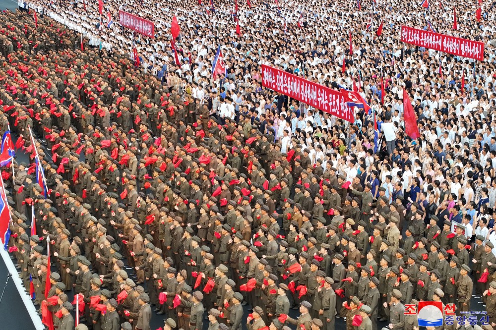 조선로동당의 존엄사수전,인민사수전에 산악같이 떨쳐나선 혁명의 핵심,인민의 선봉투사들의 억척의 신념과 기상이 맥동치는 격동적이며 전투적인 구호의 함성이 수도의 하늘가에 힘있게 울려퍼졌다.
