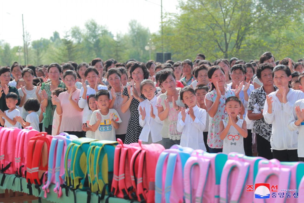 연설자는 우리 어린이들과 학생들의 생활과 교육문제는 아버지원수님께서 이번 재해복구사업을 지도하시며 제일로 관심하시고 마음쓰시는 문제이라고 하면서 수해지역 아이들을 한점의 그늘없이 더 밝고 환하게 내세우시려는 뜨거운 진정이 교복과 학용품,책가방,신발을 비롯한 갖가지 선물들마다에 어려있다고 말하였다.