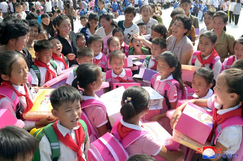 경애하는 아버지 김정은원수님께서 평양에 온 수해지역의 학령전어린이들과 학생들에게 은정어린 선물을 보내시였다