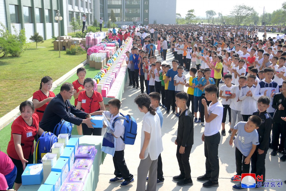 조선로동당 중앙위원회 비서들인 조용원동지,박정천동지,박태성동지를 비롯한 당중앙위원회 간부들과 수해지역의 학령전어린이들,학생들,학부모들이 참가하였다.