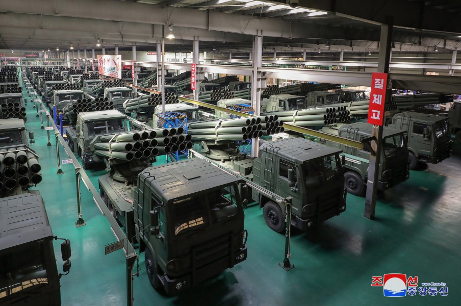 경애하는 김정은동지께서는 올해 새로 조직된 조선인민군 포병부대들에 장비시키게 되는 갱신형 240㎜방사포대차생산실태를 료해하시였다.