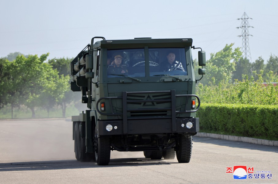 김정은동지께서는 생산된 방사포차들을 돌아보시면서 올해 생산계획과 현재까지의 생산실적을 알아보시고 몸소 포차에 오르시여 직접 시운전을 해보시며 전투적성능을 료해하시였다.