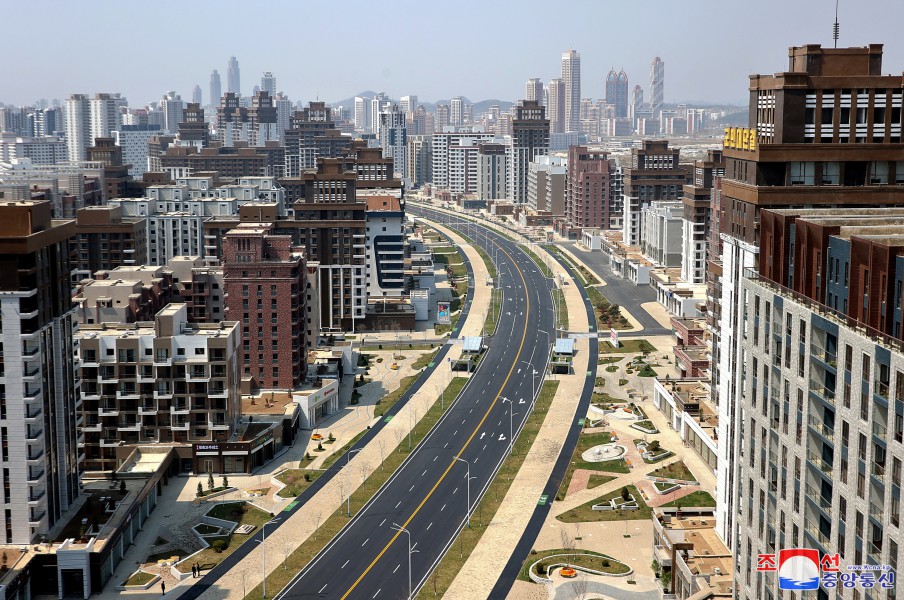 경애하는 김정은동지께서 완공을 앞둔 화성지구 2단계 1만세대 살림집건설장을 현지지도하시였다