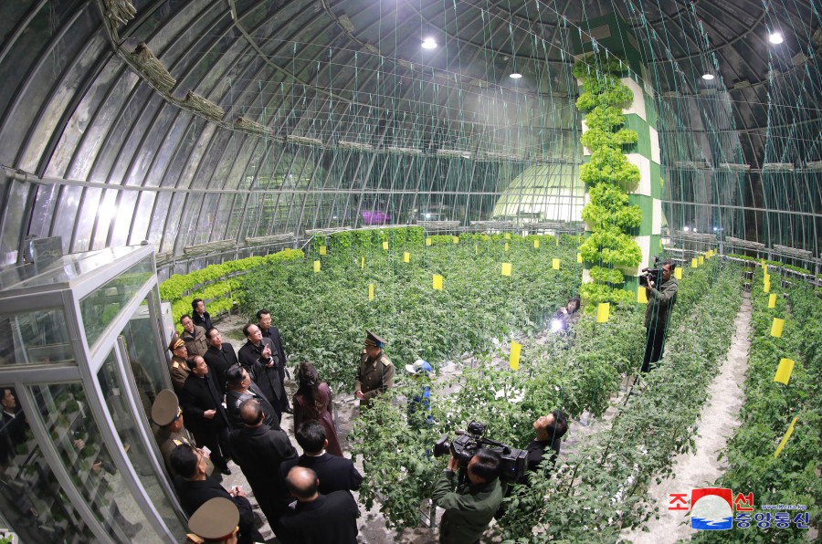 김정은동지께서는 각이한 류형의 온실들을 찾으시여 우리 나라에서 처음으로 도입된 온실남새재배를 위한 선진적인 기술장치들과 그 경제적효과성,기술적특성 등을 상세히 료해하시였다.
