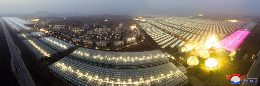 당중앙의 특별명령을 일심충성으로 받들고 떨쳐나선 조선인민군 장병들은 드세찬 공격정신과 우리 식의 창조본때로 불과 한해동안에 련포온실농장에 비해 규모와 생산능력이 훨씬 크면서도 한세대 더 발전된 종합온실과 공공건물들,자연경치와 조화를 이룬 다락식의 살림집들을 훌륭히 일떠세워 수도의 교외에 《온실도시》,《농장도시》의 선경을 펼쳐놓았다.