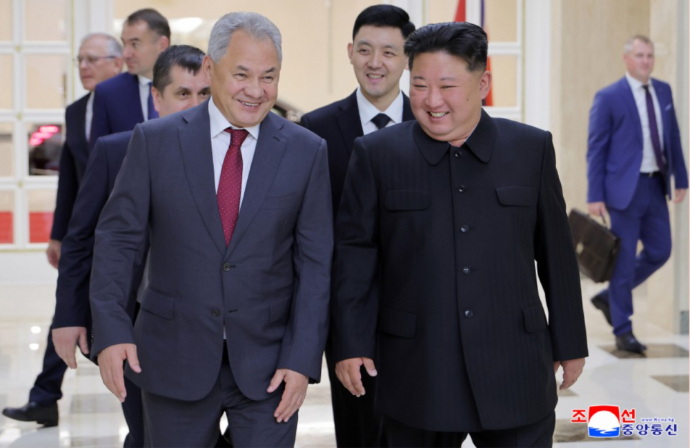 김정은동지께서는 조선민주주의인민공화국과 로씨야련방사이의 포괄적인 전략적동반자관계에 관한 조약체결 1돐이 되는 뜻깊은 시기에 평양을 찾은 쎄르게이 쇼이구동지를 반갑게 맞이하시고 따뜻한 담화를 나누시였다.