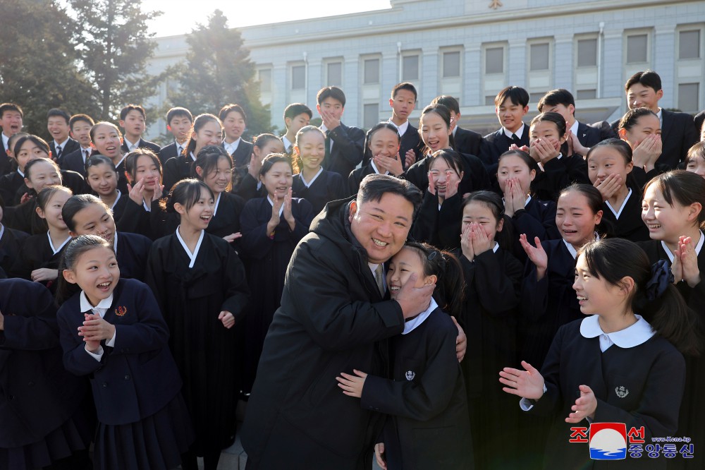 아버지원수님께서는 크나큰 감격에 휩싸여 기쁨에 넘쳐있는 예술단성원들을 정겹게 바라보시면서 귀여운 학생들의 볼도 다독여주시며 어머니조국에서 새해를 뜻깊게 맞이한 그들을 따뜻이 축하해주시였다.