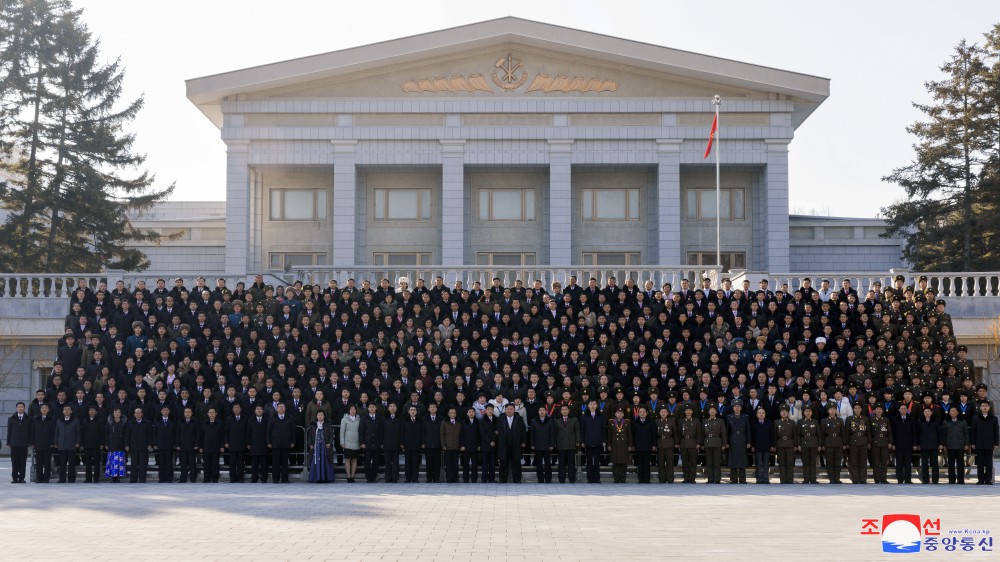 경애하는 김정은동지께서 새해 2025년에 즈음하여 로력혁신자,공로자들과 기념사진을 찍으시였다