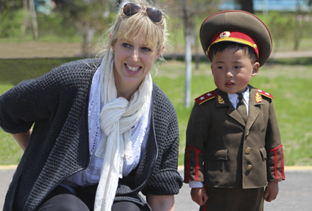 북 어린이와 사진을 찍고 있다. 이들은 평양을 떠나고 싶지 않다며