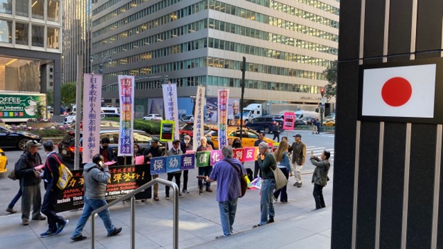 6.15뉴욕위원회가 주최하는 재일동포학생들을 차별하는 일본정부의 민족차별정책과 인권유린을 규탄하는 세번째 시위를 11월 3일 11시에 예정대로 진행했습니다. 10월 초에 기온이 떨어져서 11월 초에는 더 추울까하고 걱정을 했는데 전형적인 쾌청한 가을날이었습니다.