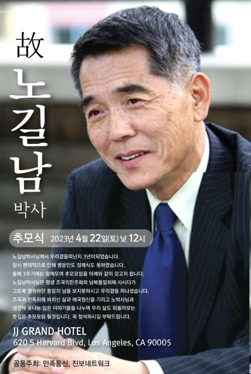 고 노길남 박사 서거 3주기를 맞아 로스앤젤레스에서 추모식이 열립니다.
