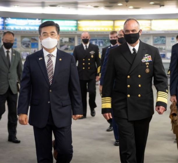 ![]() ▲이사진은 2021년 7월 14일서욱국방장관이서울을방문한찰스리처드미국전략사령관과함께국방부청사에서걸어가는장면이다.그는미국이한국에확장억제를제공할준비를완벽하게갖추었다는사실을알려주기위해서울을방문했다.지금으로부터석달전인 2021년 4월 12일부터 16일까지전시에신형저위력전술핵무기를사용할모의전쟁연습을직접지휘했던미국전략사령관이석달만에서울에나타나전술핵무기를사용하는확장억제제공공약을재확인하였다는사실에주목할필요가있다. |