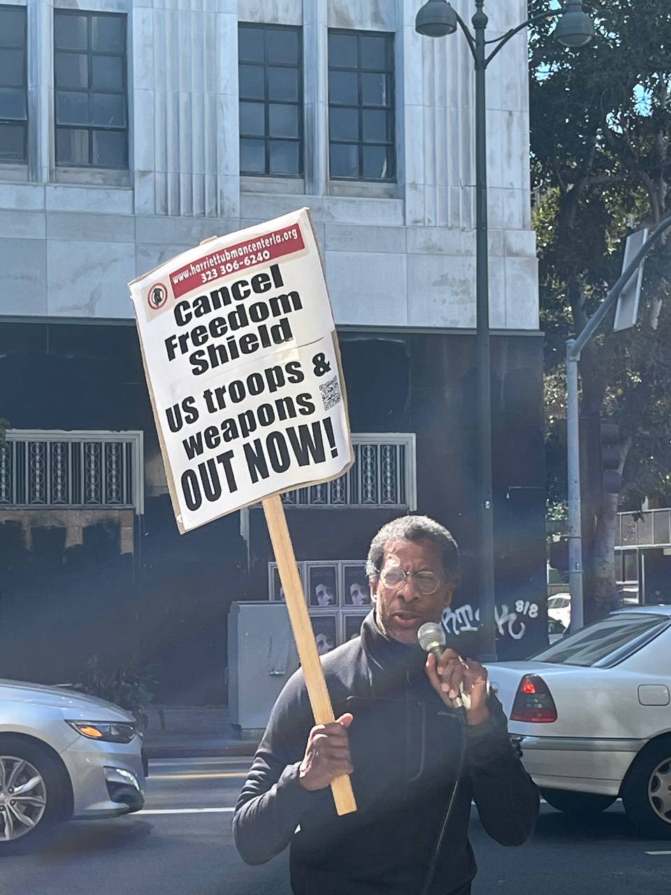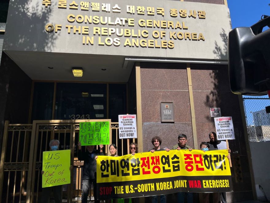 미주양심수 회원들과 Party of Social Liberalism, Harriet Tubman Center for Social Justice, 동포 청년들이 3월 8일 엘에이 영사관 앞에 모여 포천의 오폭으로 인명피해가 났음에도 진행될 프리덤 실드 전쟁연습 중단과 주한미군철수, 평화협정체결을 외쳤습니다.