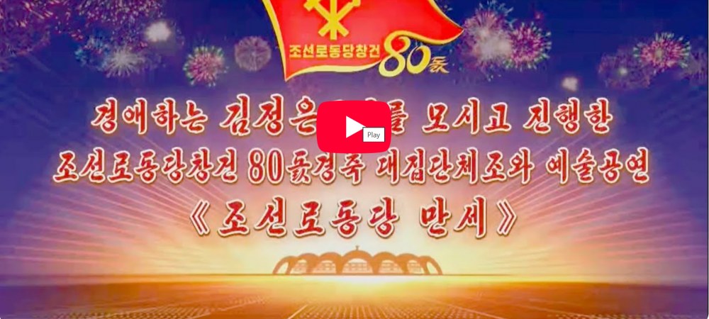 [동영상] 조선로동당창건 80돐경축 대집단체조와 예술공연 《조선로동당 만세》 페이지 정보 작성자 강산 기자 작성일25-10-25 12:39 조회15회 댓글0건 관련링크 다음글 목록 본문 경애하는 김정은동지를 모시고 진행한 조선로동당창건 80돐경축 대집단체조와 예술공연《 조선로동당 만세》위 링크를 누르고 유튜브에서 확대하여 시청하시기 바랍니다. 댓글목록 등록된 댓글이 없습니다. 다음글 목록